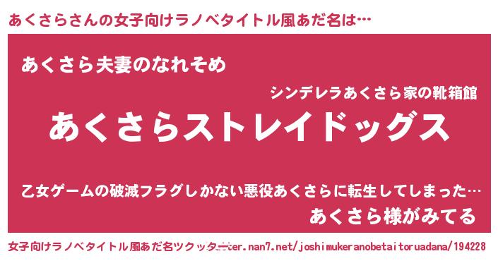 | 肩書あだ名 | 『あくさら閣下』『あくさら助手』 |