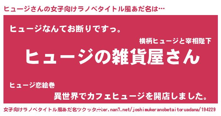 | 男性向けラノベタイトル風あだ名 | 『やはりヒュージの青春ラブコメはまちがっている 』 |