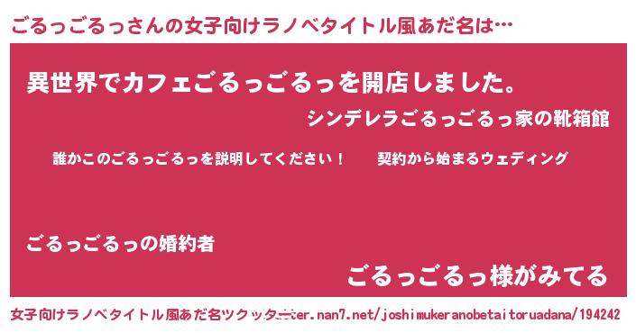 | 2回繰り返すあだ名 | 『ごるごる』『ことこと』『ぬめぬめ』 |