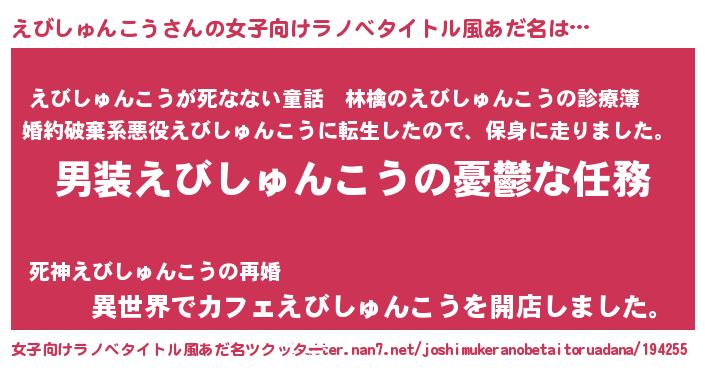 | 意味不明あだ名 | 『住所不定無職えびしゅんこう(50歳)』 |