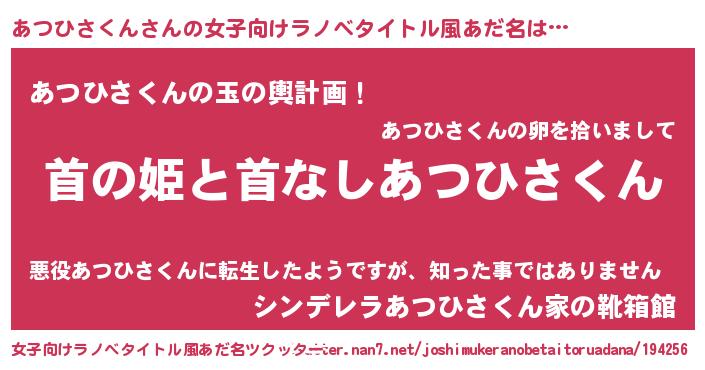 | ヘコむあだ名 | 『あつぷりん』『あつにゅー』『牛乳』 |