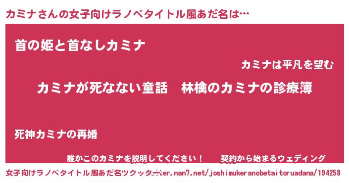 | 意味不明あだ名 | 『住所不定無職カミナ(77歳)』 |