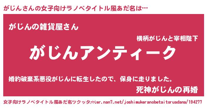 | 意味不明あだ名 | 『自称がじん』『がじんフォーエバー』 |