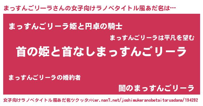 | 恥ずかしいあだ名 | 『プリティーまっすんごリーラ』 |