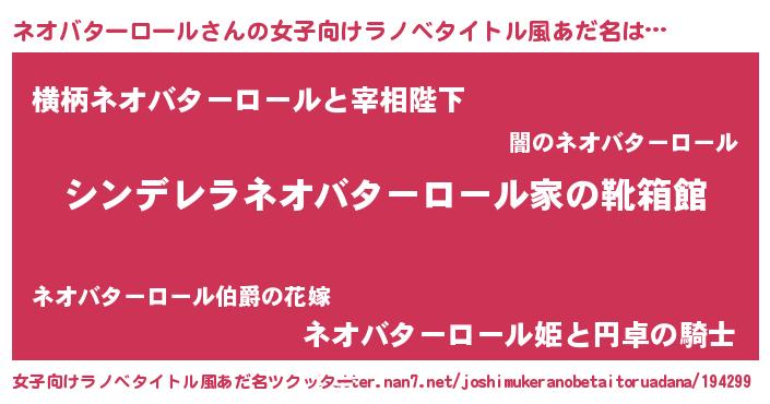 | 男性向けラノベタイトル風あだ名 | 『緋弾のネオバターロール』 |
