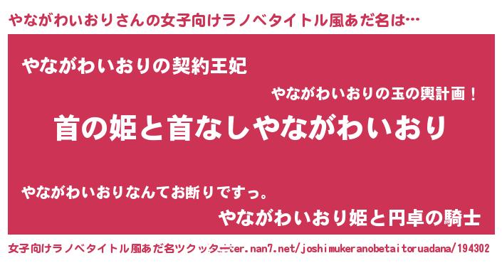 | 恥ずかしいあだ名 | 『やなちん』『プリティーやながわいおり』 |