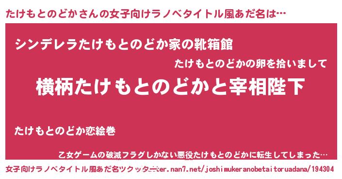 | ヘコむあだ名 | 『たけを』『たけもとのどか(遠い目)』 |