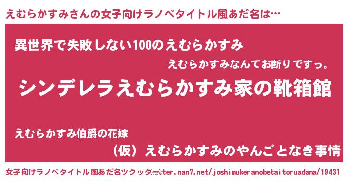 | 意味不明あだ名 | 『永久保存えむらかすみ』 |