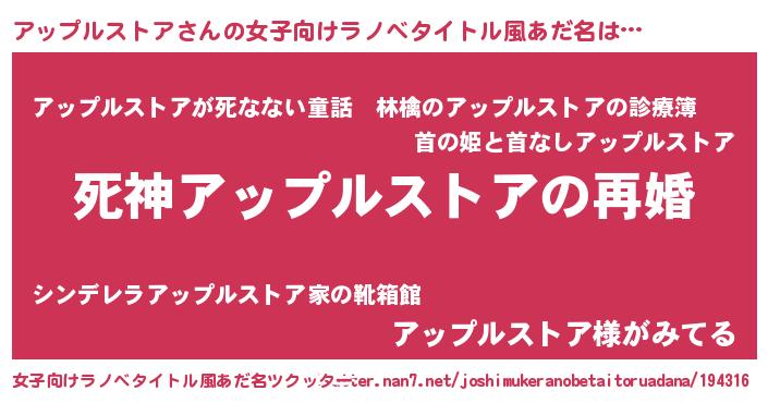 | 男性向けラノベタイトル風あだ名 | 『ノーゲーム・ノーアップルストア』 |