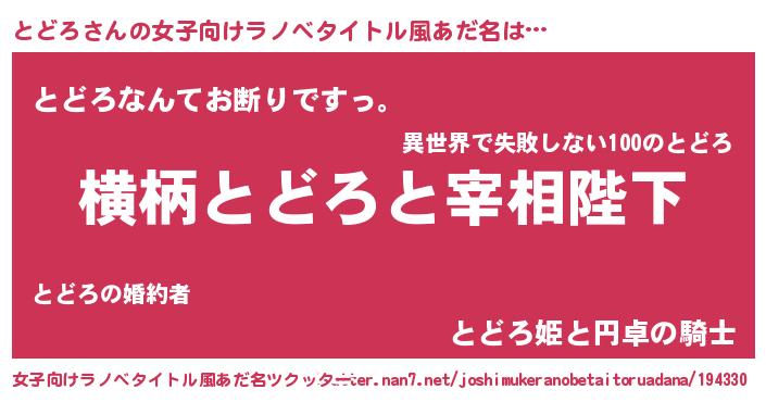 | 意味不明あだ名 | 『自称とどろ』『ペロリンとどろ』 |