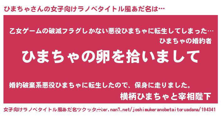 | ファンタジー風あだ名 | 『ファントムヒマス』『ヴァルヒマーナ』 |