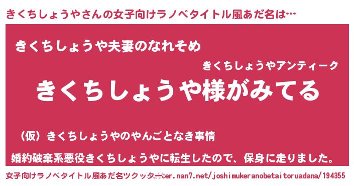 | 男性向けラノベタイトル風あだ名 | 『きくちしょうやの嫁は女の子じゃないと思った?』 |