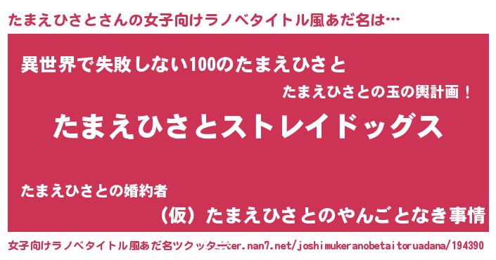 | 男性向けラノベタイトル風あだ名 | 『Re:たまえひさとから始める異世界生活』 |