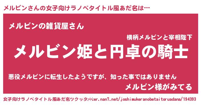 | ファンタジー風あだ名 | 『メルフェル』『エターナルメルビンー』 |