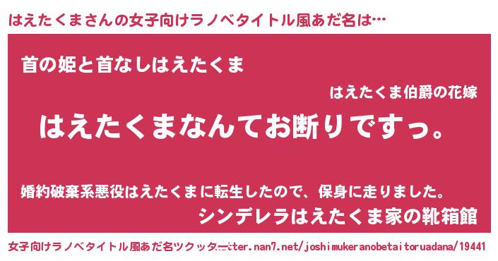 | 自動車の名前っぽいあだ名 | 『レクハス』『ランハエギーニ』 |