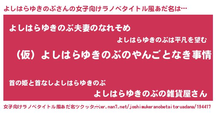 | 胡散臭い通販商品みたいなあだ名 | 『必ず成功する水晶球…その名も「よしはらゆきのぶ」』 |