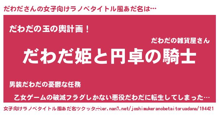 | 男性向けラノベタイトル風あだ名 | 『ダワダアートオンライン』 |