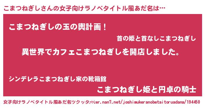 | 意味不明あだ名 | 『永久保存こまつねぎし』 |