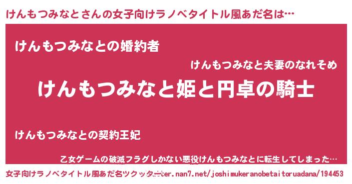 | 男性向けラノベタイトル風あだ名 | 『けんもつみなとの憂鬱』 |