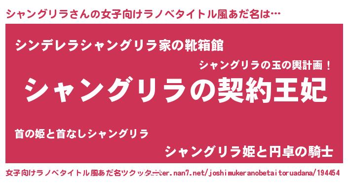 | 意味不明あだ名 | 『永久保存シャングリラ』 |