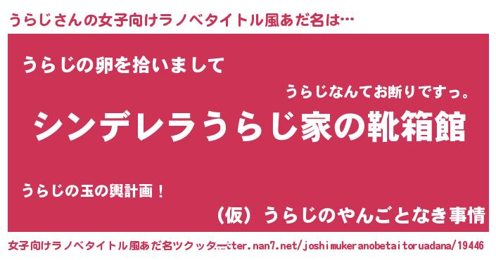 | 胡散臭い通販商品みたいなあだ名 | 『信頼と実績のサプリメント…その名も「うらじ」』 |