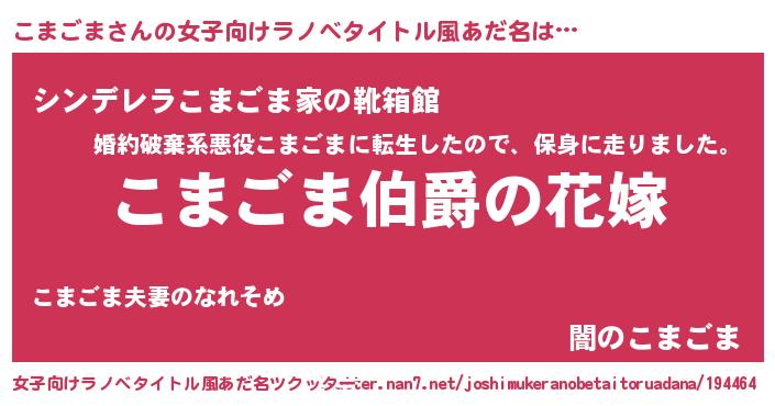 | ファンタジー風あだ名 | 『エターナルコマゴマー』『ゼコマトゥ』 |