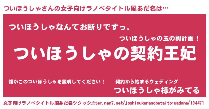 | 男性向けラノベタイトル風あだ名 | 『ついほうしゃという概念が存在しない退屈な世界 』 |