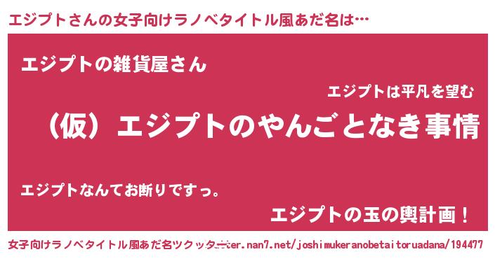 | 男性向けラノベタイトル風あだ名 | 『エジプトの憂鬱』 |
