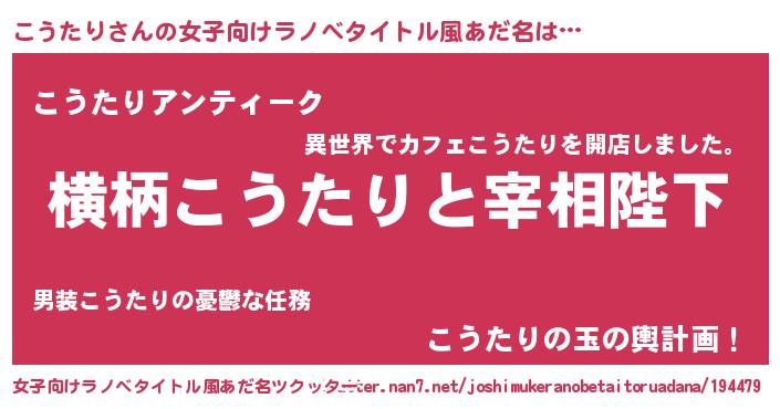 | ヘコむあだ名 | 『こうたり(爆)』『こうっふぃ~』 |