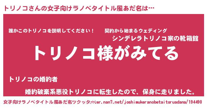 | 男性向けラノベタイトル風あだ名 | 『トリノコの嫁は女の子じゃないと思った?』 |