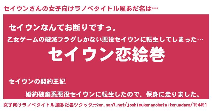 | ヘコむあだ名 | 『セイウン(笑)』『セイっふぃ~』 |