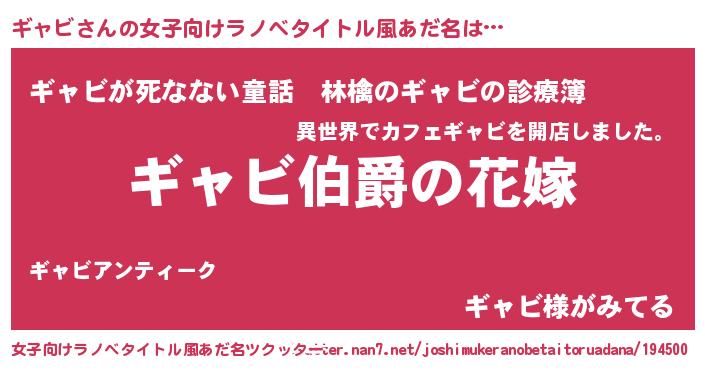 | ファンタジー風あだ名 | 『エターナルギャビー』『ヴァルギャーナ』 |