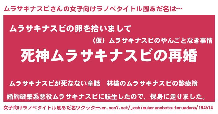 | 男性向けラノベタイトル風あだ名 | 『ノーゲーム・ノームラサキナスビ』 |