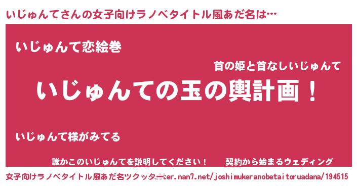 | ヒーロー風カッコイイあだ名 | 『慈愛の使者いじゅんて』『天弓騎士イジ』 |