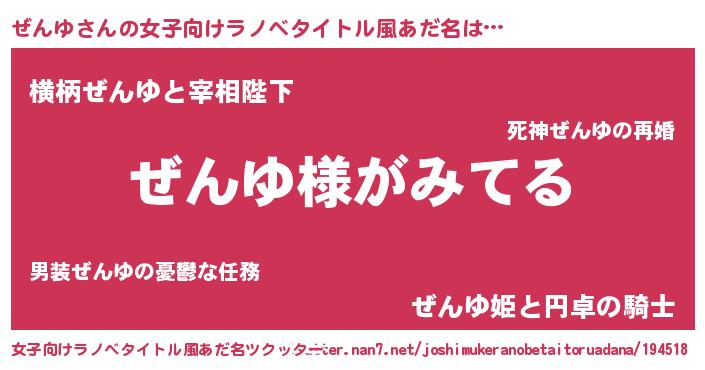 | 自動車の名前っぽいあだ名 | 『ゼント』『ランゼンギーニ』『ゼンR』 |