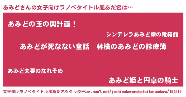 | 意味不明あだ名 | 『住所不定無職あみど(56歳)』 |