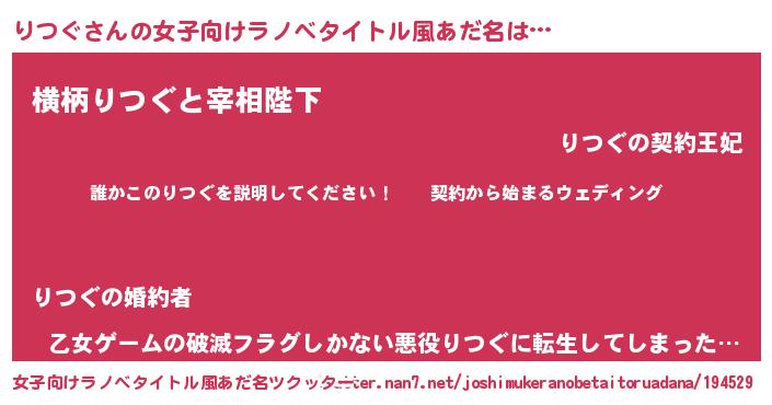 | 男性向けラノベタイトル風あだ名 | 『リツグアートオンライン』 |