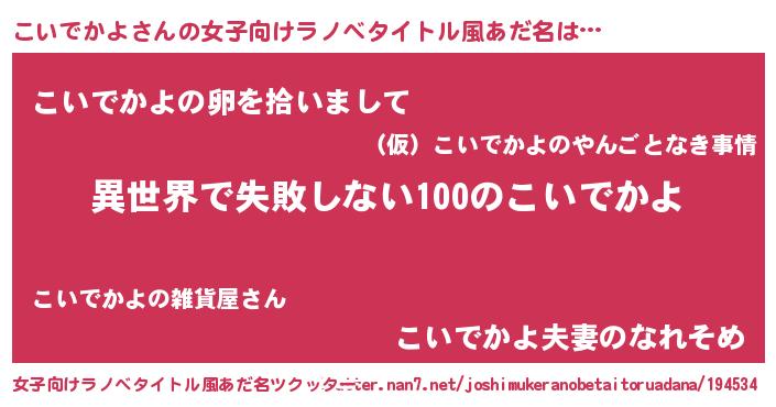 | 男性向けラノベタイトル風あだ名 | 『こいでかよという概念が存在しない退屈な世界 』 |