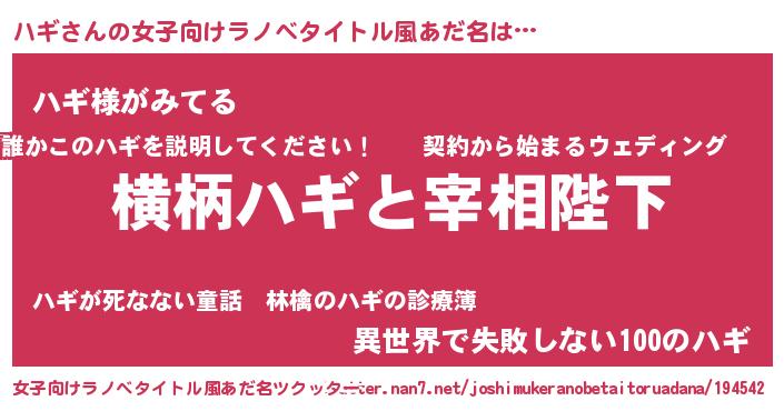 | 男性向けラノベタイトル風あだ名 | 『ハギに滅ぼされるだけの簡単なお仕事です』 |