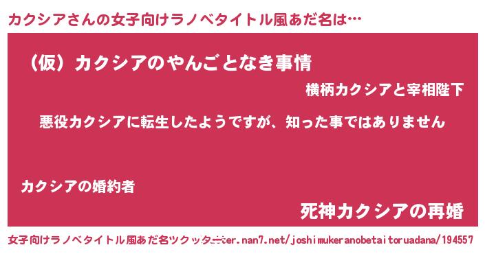 | 意味不明あだ名 | 『住所不定無職カクシア(79歳)』 |