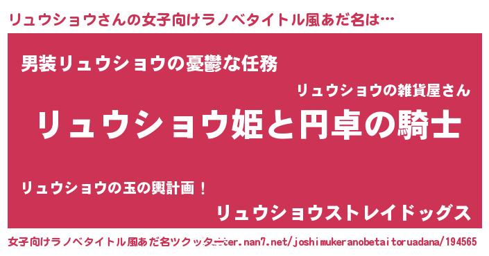 | 男性向けラノベタイトル風あだ名 | 『リュウショウアートオンライン』 |