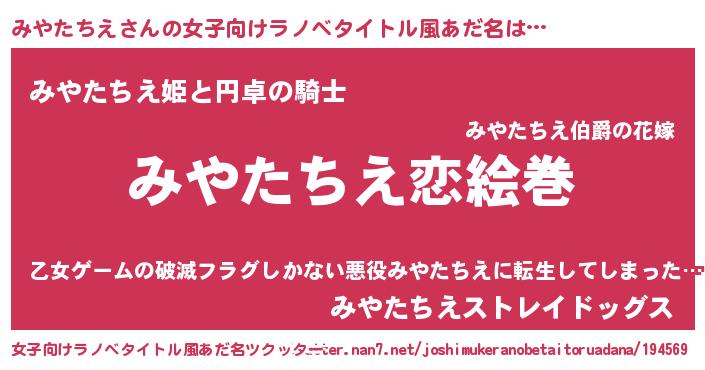 | 男性向けラノベタイトル風あだ名 | 『ノーゲーム・ノーミヤタチエ』 |