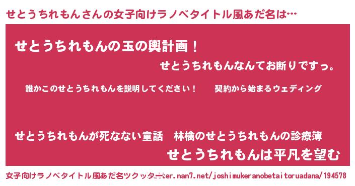 | ヒーロー風カッコイイあだ名 | 『スーパーセトウチレモン』 |