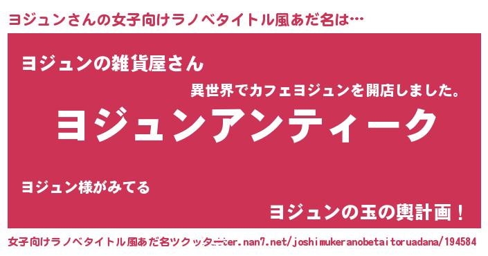 | 意味不明あだ名 | 『自称ヨジュン』『ヨジュンフォーエバー』 |
