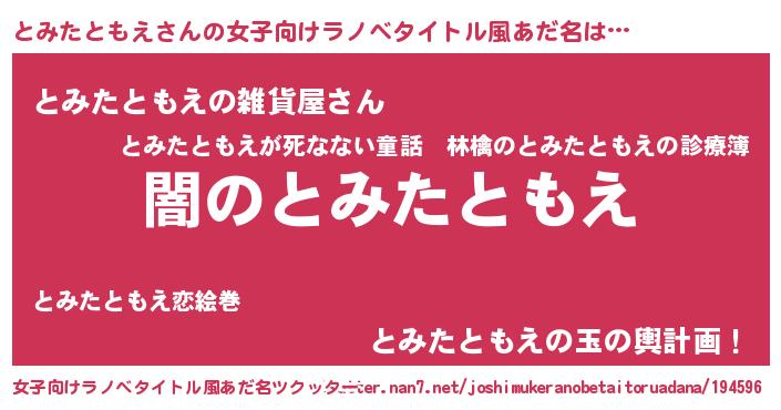 | 男性向けラノベタイトル風あだ名 | 『Re:とみたともえから始める異世界生活』 |