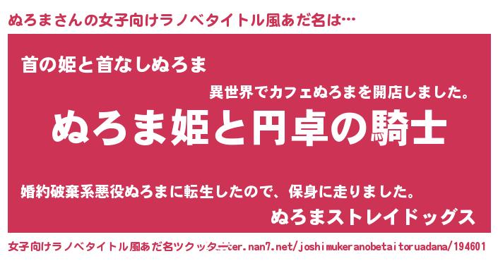 | 男性向けラノベタイトル風あだ名 | 『ヌロマアートオンライン』 |