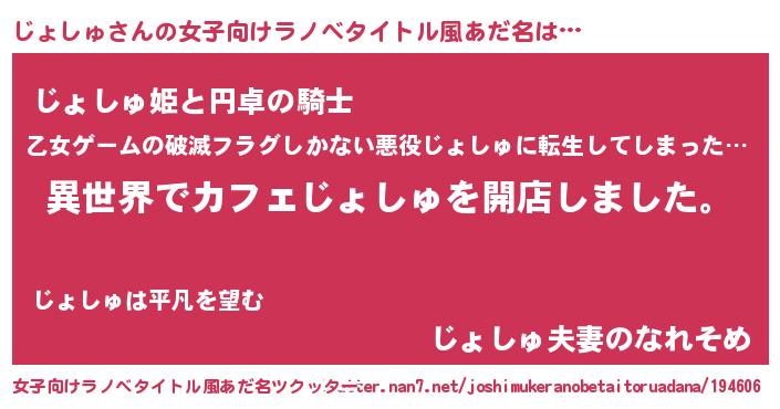| 男性向けラノベタイトル風あだ名 | 『誰もが恐れるあのじょしゅが、ぼくの専属メイドになるようです。』 |