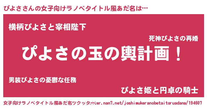 | 胡散臭い通販商品みたいなあだ名 | 『億万長者になれる水晶球…その名も「ぴよさ」』 |
