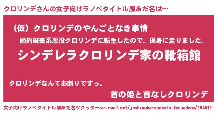 | 意味不明あだ名 | 『ペロリンクロリンデ』『自称クロリンデ』 |
