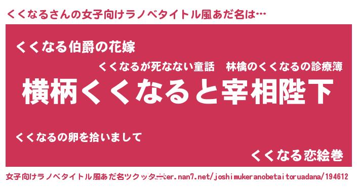 | 男性向けラノベタイトル風あだ名 | 『くくなるに滅ぼされるだけの簡単なお仕事です』 |